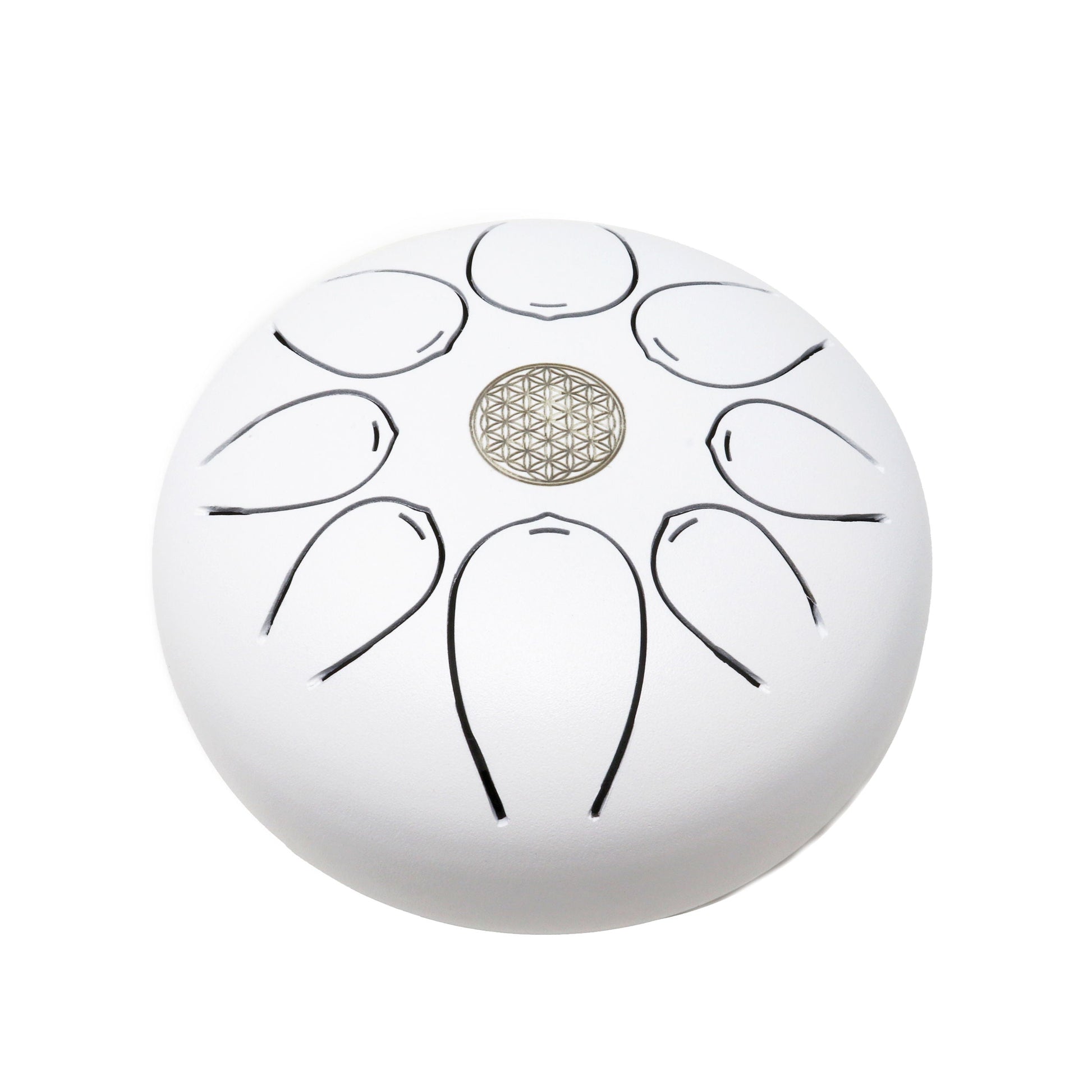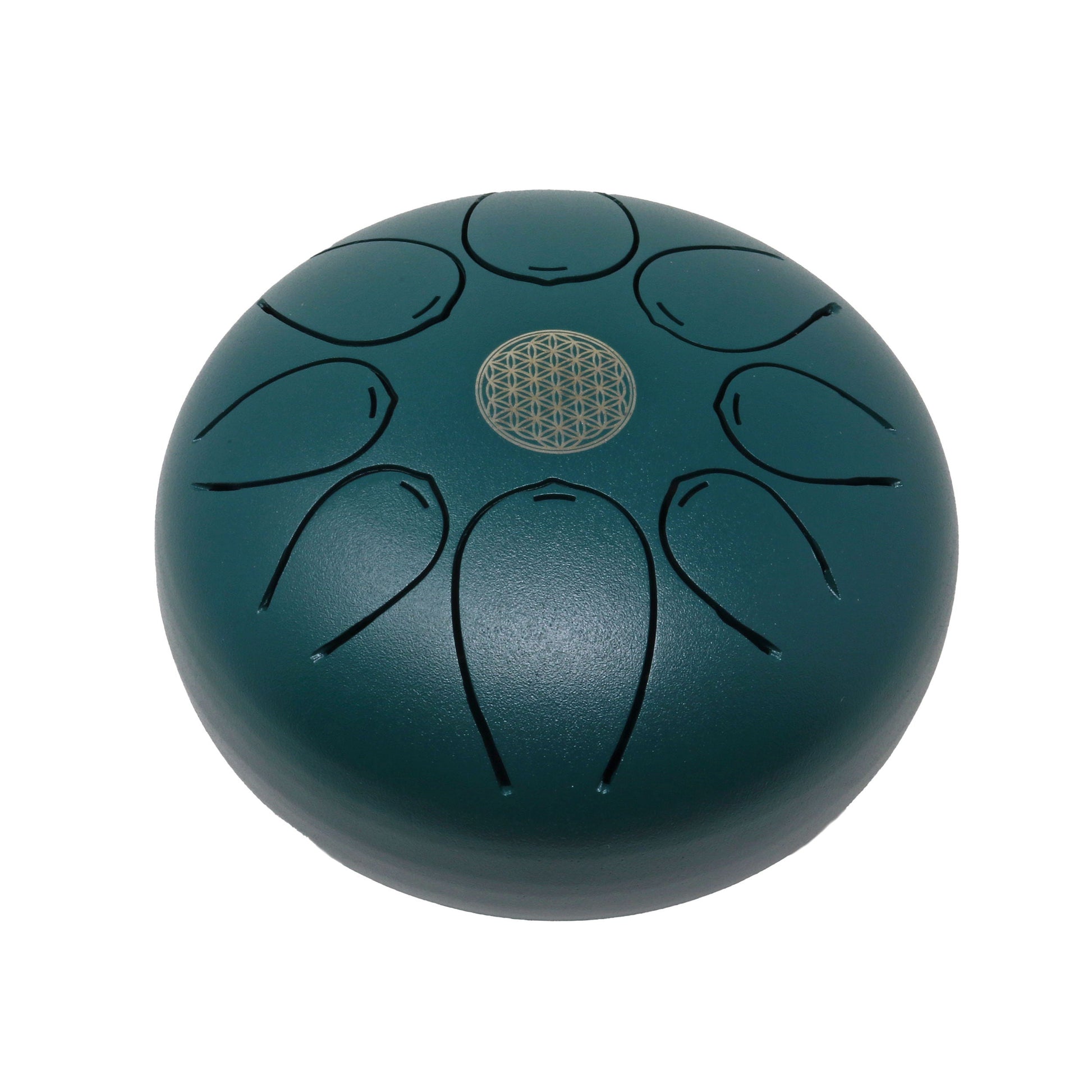 Introducing our 13cm steel tongue drum – an easy to play instrument that blends ancient tradition with modern ease. Featuring a flower of life symbol and available in multiple calming colors like soft blue, matte black, dark green, brown, and metallic gold, this drum invites tranquility into any meditation space or home. Its compact size and included travel bag make it easy to enjoy soothing, pentatonic melodies anywhere. No musical background required—play with fingers or mallets for an intuitive, relaxing experience. Inspired by Aztec log drums and African slit drums, this modern version promotes mindfulness.