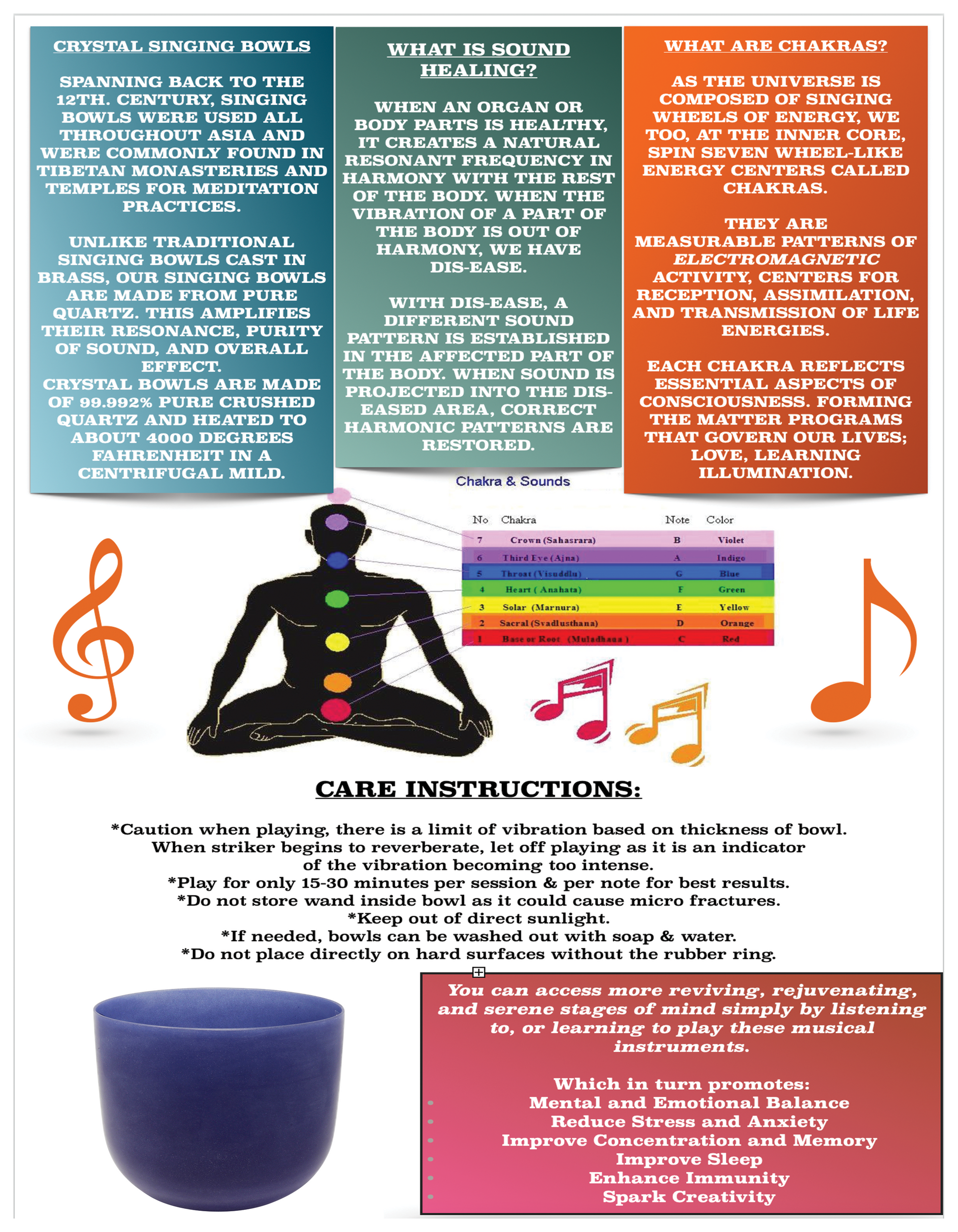 Enhance your space with this 20" Frosted Quartz Sound Bowl, tuned to an E note. Crafted from 99.99% pure quartz crystal, it delivers a resonant sound ideal for meditation and relaxation. Inspired by ancient sound healing practices, this bowl brings the benefits of stress relief, mood enhancement, and well-being into your home. Simply tap and circle the included striker along the rim to produce a calming tone, helping you achieve focus and tranquility. Includes striker and rubber ring holder for maximizing vibrations.