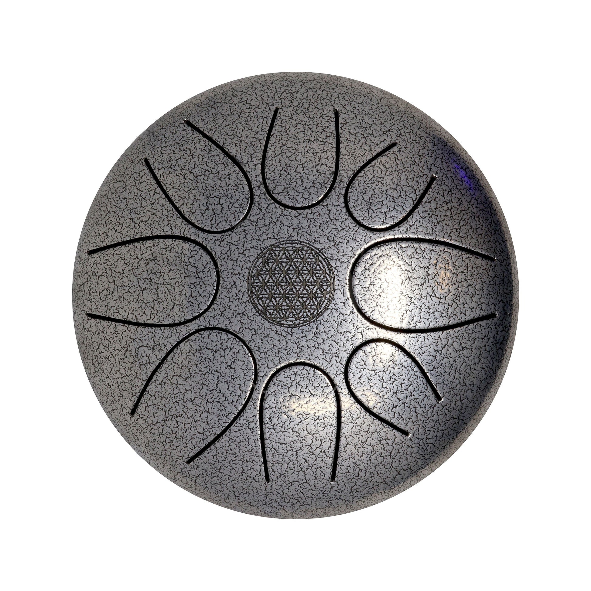 This steel tongue drum is perfect for meditation and relaxation in any room or on-the-go with its included travel bag. It's easy to play and requires no prior skill or musical background. Just hit the tongue-shaped cutouts with mallets or fingers and enjoy the meditative state it induces. The Flower of Life symbol represents the cycle of creation and is thought to hold sacred patterns of the universe. Play anywhere and tune out the world with this intuitive and versatile instrument.