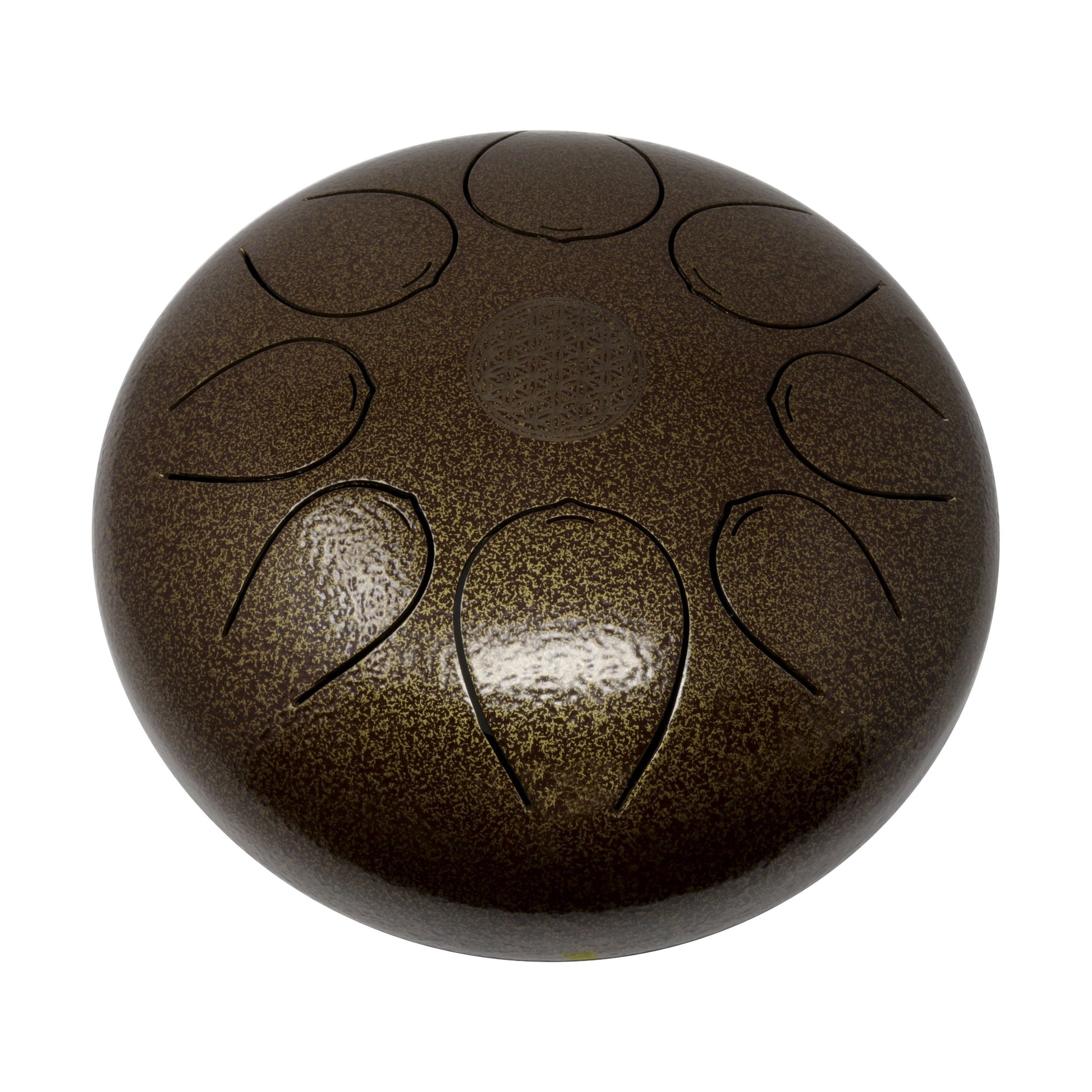 Introducing our steel brown tongue drum, the perfect addition to your musical space or living room. With its deep rich tones, this drum is easy to play and requires no particular skill or musical background. Simply pick up your mallets and start hitting the inside of the cutouts, shaped like a tongue. You'll immediately feel relaxed and in a meditative state. The drum comes with a travel bag/backpack, making it easy to transport and enjoy anywhere. Play with your fingers or use our finger sticks to save your hands from calluses.