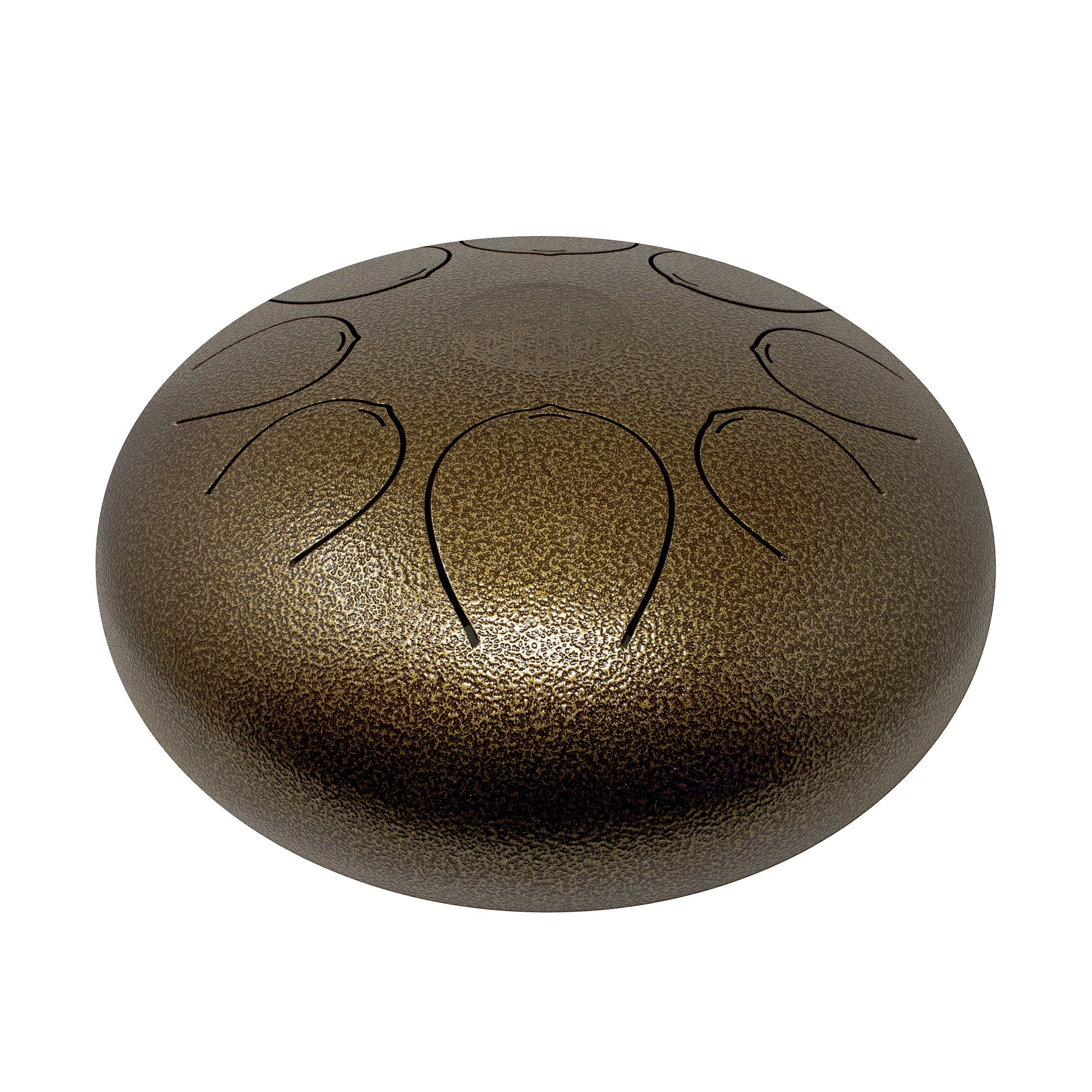 Introducing our largest tongue drum, featuring deep, rich tones and a steel brown shade. Its subtle yet strong appearance makes it a perfect fit for any work space or home. Adorned with the symbolic flower of life, this drum is ideal for meditation spaces or living rooms. With the included travel bag/backpack, you can easily transport it anywhere. The origins of tongue drums can be traced back to ancient wooden versions created by the Aztecs and the African Slit Drum. However, our modern-day steel tongue drums are easy to play and require no specific musical skill. Simply pick up the mallets and hit the tongue-shaped cutouts. Experience the benefits of this intuitive instrument, regardless of your musical background.