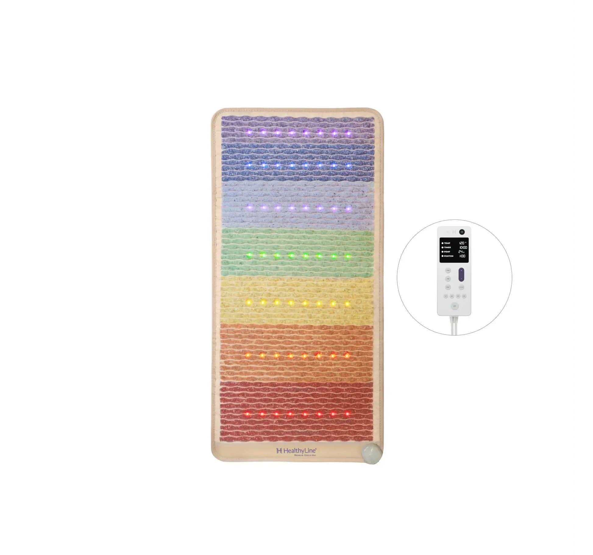 The Rainbow Chakra Mat™ is a PEMF Far Infrared Heating Mat designed to align your mind, body, and spirit. Featuring seven chakra-aligning gemstones, it evenly distributes soothing heat while integrating PEMF, Negative Ion, Red Light, and Far Infrared Therapies. Together, these natural therapies promote relaxation, enhance blood circulation, and ease muscle tension. Perfect for meditation, yoga, or holistic wellness, the Rainbow Chakra Mat encourages detoxification, eases tension, and promotes a state of mental calm and physical rejuvenation.