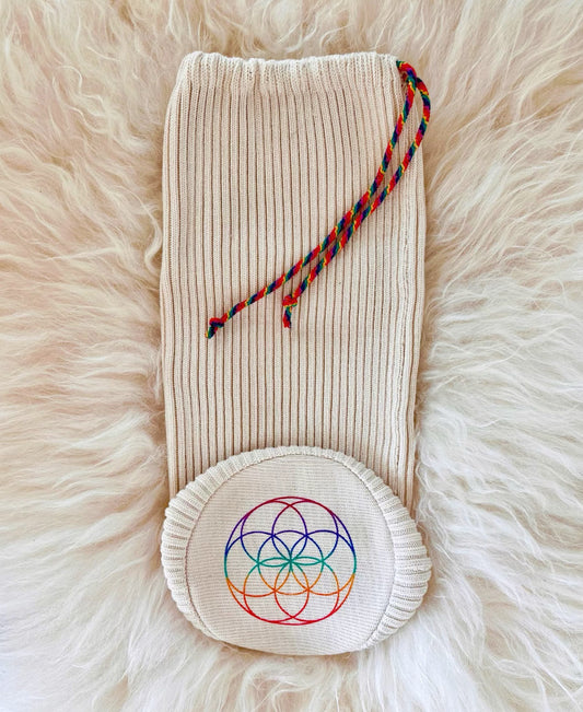Our Harmonic Skins are crafted from 100% undyed organic Silk Touch cotton. Each skin features a finely woven flat knit with drawstring closure that embodies both elegance and functionality.